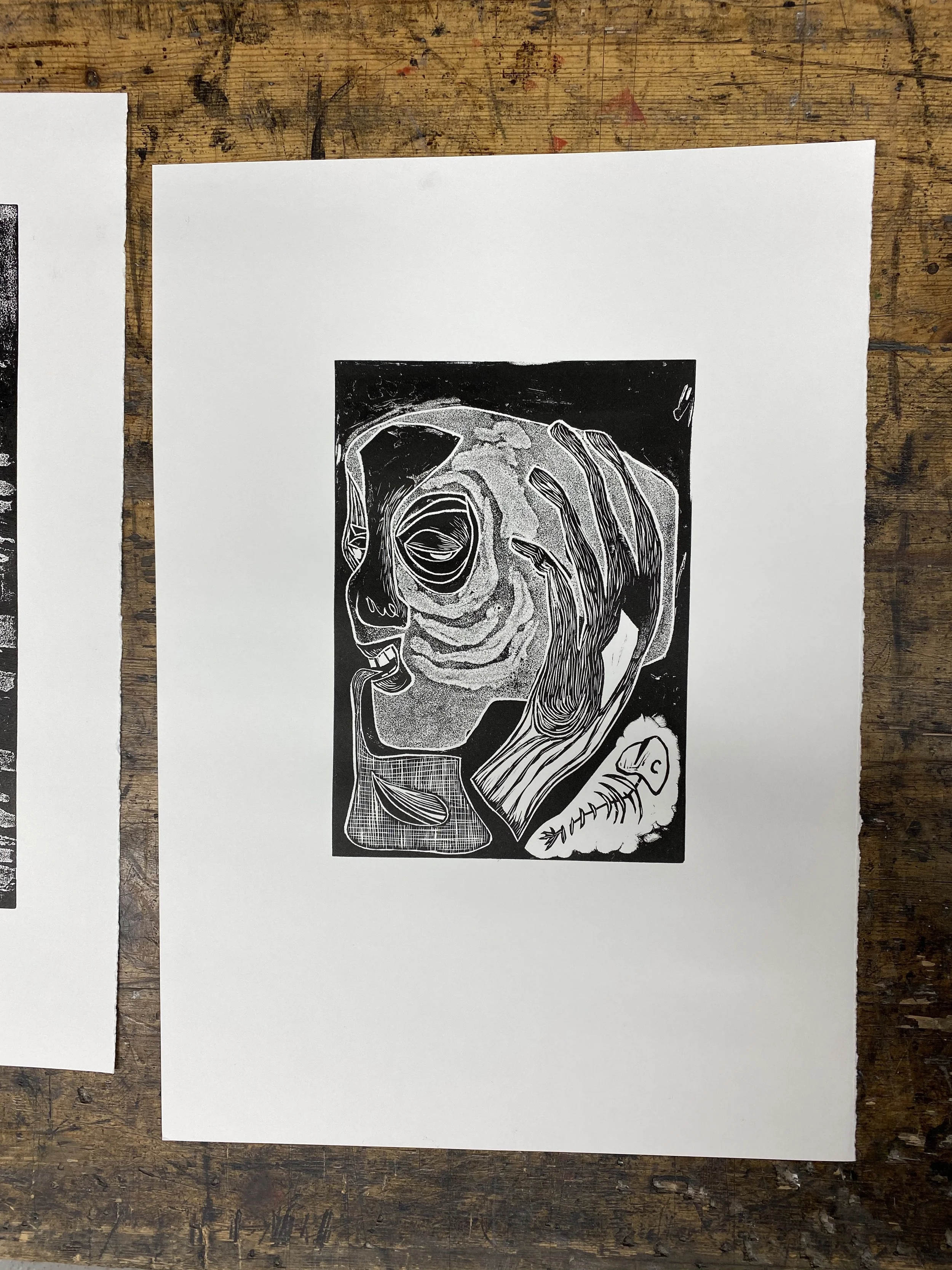 Test print and troubleshoot your carved/etched lino block.